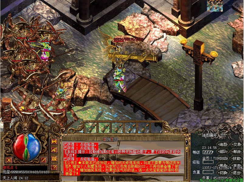 魔界黄金屋:进入一小时后自动回城,先进入黄金屋入口清完里所有怪物(刷新时间为一小时)方可进入黄金屋,黄金屋内必爆龙吟以上装备,建议玩家组队前往。