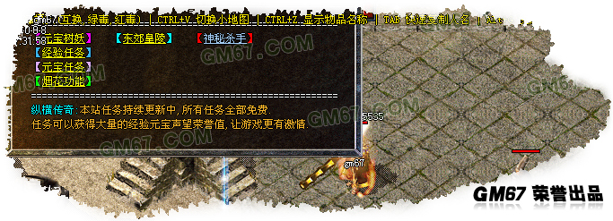 各位PK高手请注意新增的游戏热键: Alt+S 道士下毒模式(互换,绿毒,红毒) | CTRL+V 切换小地图 | CTRL+Z 显示物品名称 | TAB 快速复制人名 | Alt+G 快速组队 | Alt+R 刷新背包 | Alt+Q 快速退出游戏.