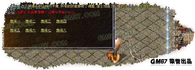玩家中不乏存在只喜欢挑战BOSS的玩家,因此在土城我们设立了挑战BOSS的商人,八个房间提供高手玩家击杀BOSS使用.