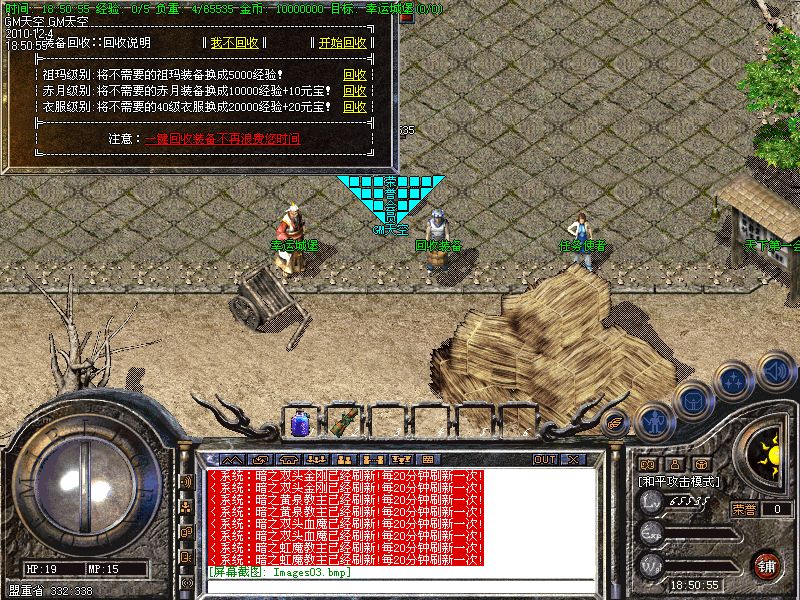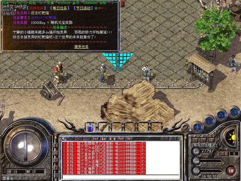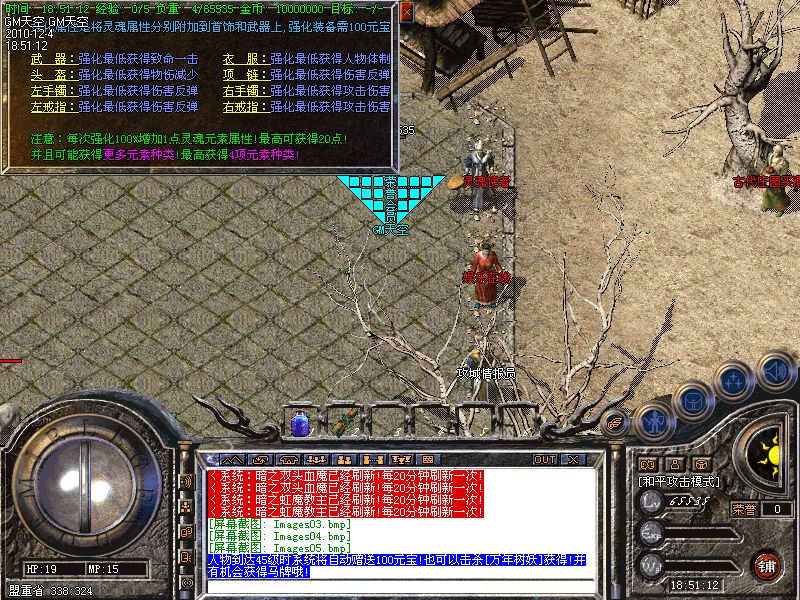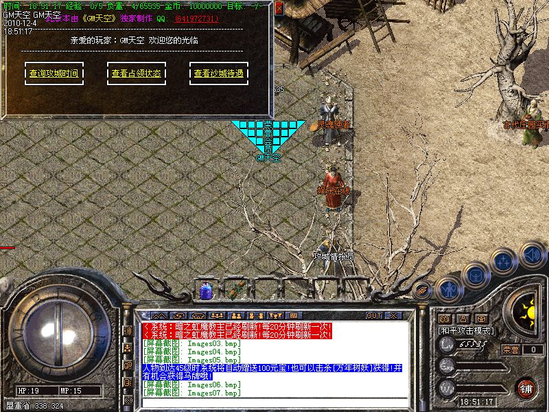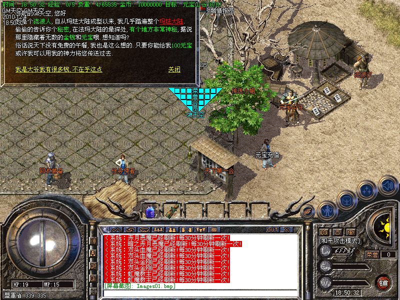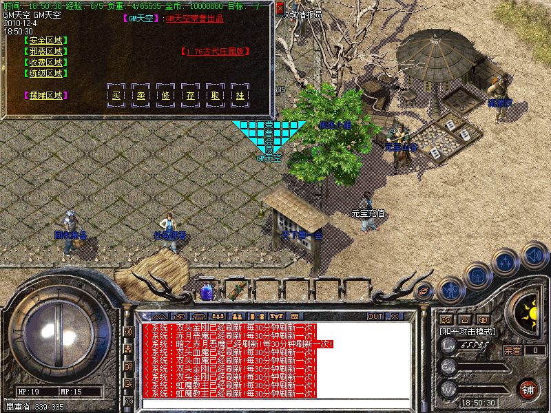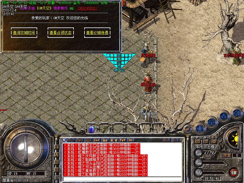 增加游戏乐趣!本服每2小时刷新一只[万年树妖]相当于最好的BOSS哦!还有机会获得马牌那!