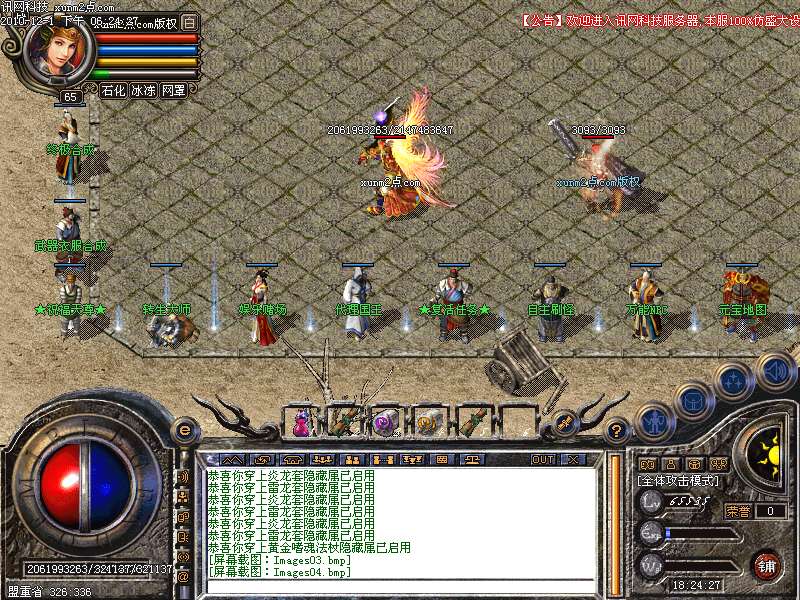 欢迎进入<$SERVERNAME>服务器,本服100%仿盛大设置,不变态,适合长期玩家。元宝比例1:10000,点卡充赠送50%网银赠送100%,