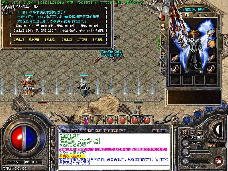 游戏中所有BOSS匀有几率掉RMB。RMB分为1角,5角,1元,2元,3元,5元。获得后可以去土财神叶处。换取相应的元宝。.
