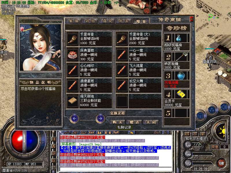 6、会员地图爆率高,超级打宝地图可以爆到一天类装备,会员功能可以使用商铺积分兑换倚天装备.