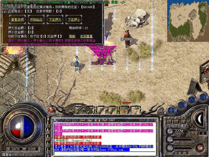 5.土药店每20分钟刷新一只[免费充值元宝]树妖.每次爆出大量元宝.至少500元宝.还有七星珠爆出