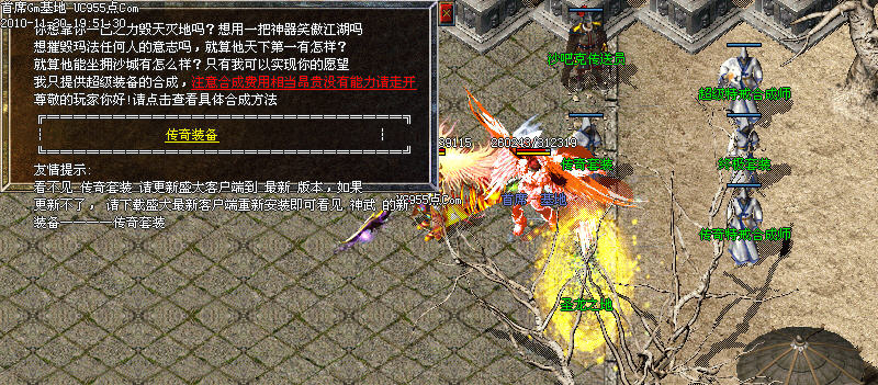 更新盛大最新主宰套装、传奇套装(拿上传奇之刃触发“神龙附体技能”使用该技能后,6秒内能力大幅度提升,技能冷却时间45秒),无需下载补丁,看不到装备的请更新盛大客户端至版本号2.0.1.3!开通连击第四招,四级合击!!!