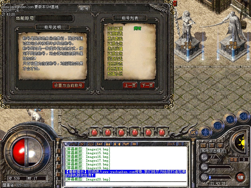 【称号系统】:你的成就,你的名号,都在封号系统中完美体现!包括荣誉称号,还有各类排名前十的称号。所有称号都有称号效果加成,每一个称号,都是实力,魅力的象征!