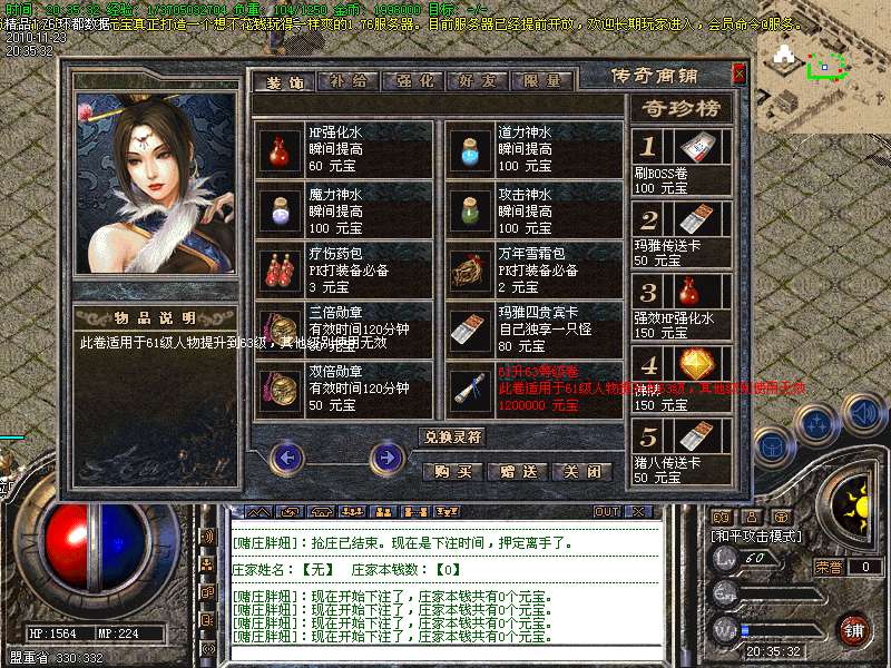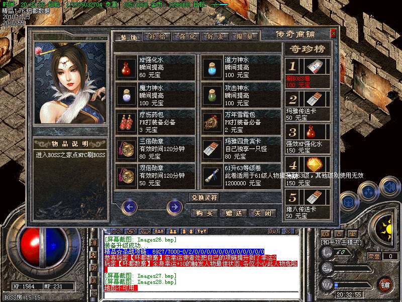 环都数据--1.76精品☆赤月人物幸运10变色黄金屠龙版