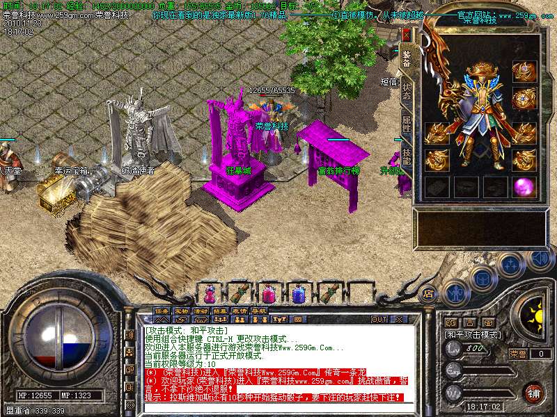 当前版本名称:荣誉科技-正在开区十周年精品1.76传奇套装-银月之城-狂暴城-五星天堂[HERO引擎]