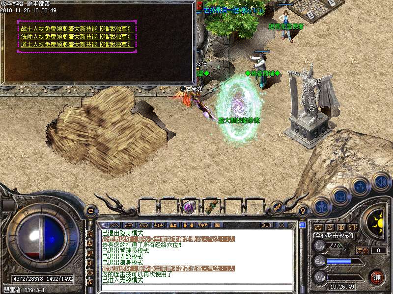 风雷令1. 增加风雷令,可以将在线的一个行会的集合在一起 ,2. 给玩家一个很激情的场所,不过有地图限制的哦