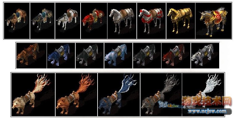 十大变身甲:沃玛披甲、鸡天甲、鹿天甲、蝎蛇披甲、蝙蝠轻甲、虎卫披甲、恶蛆披甲、卫士披甲、兽民披甲、骷髅披甲、猩猩战甲;