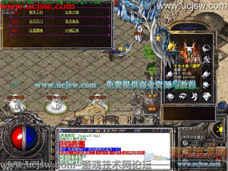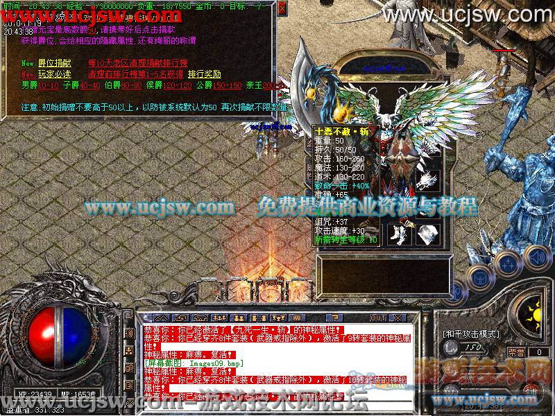 〖提示〗:新地图.装备.副本.进入条件以及合成材料请到土城酒馆处查询.排行榜捐献每月1号.10号.20号清零.奖励丰厚详情查看土 爵位捐献