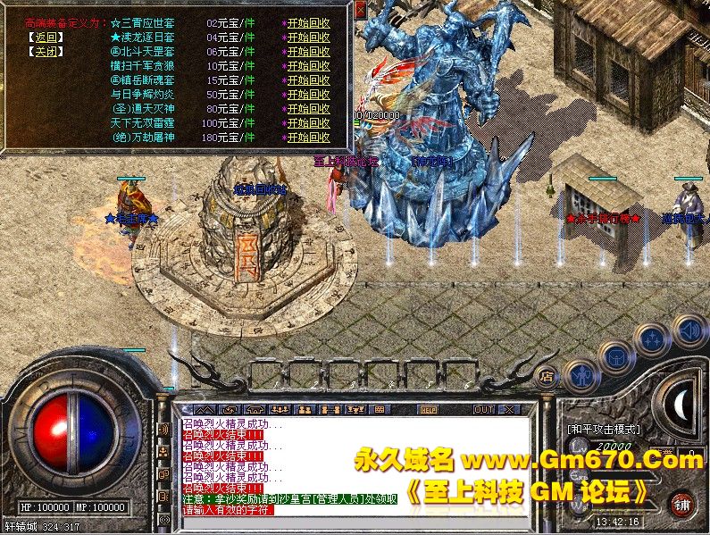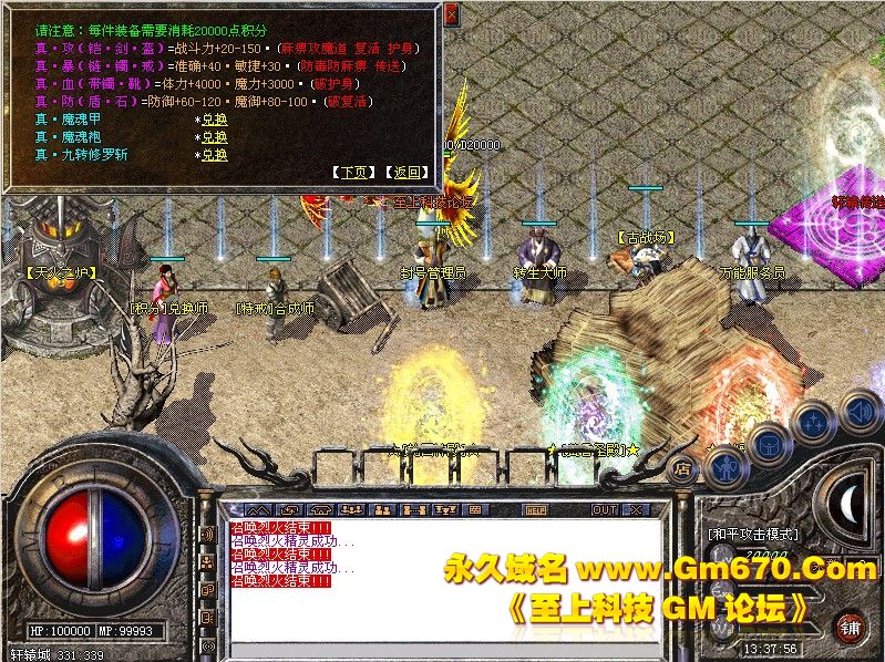 【荣誉系统】:击杀BOSS得荣誉值,最荣誉值可兑换到本服所有装备