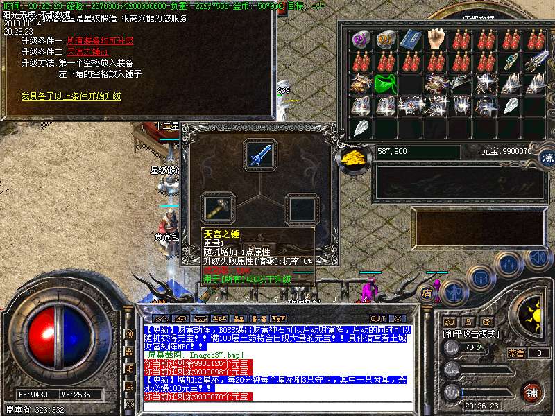 【更新】土城增加星级升级师,使用[天宫之锤]可以给装备升星!最高可升40星!
