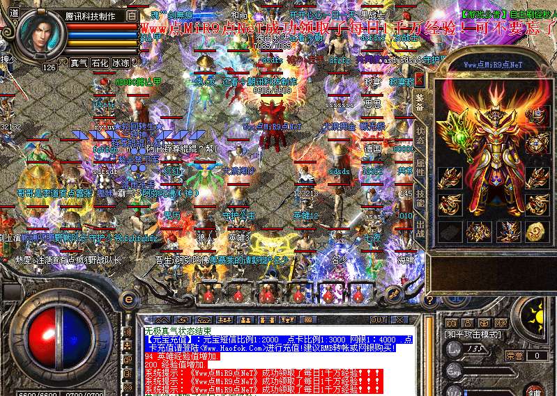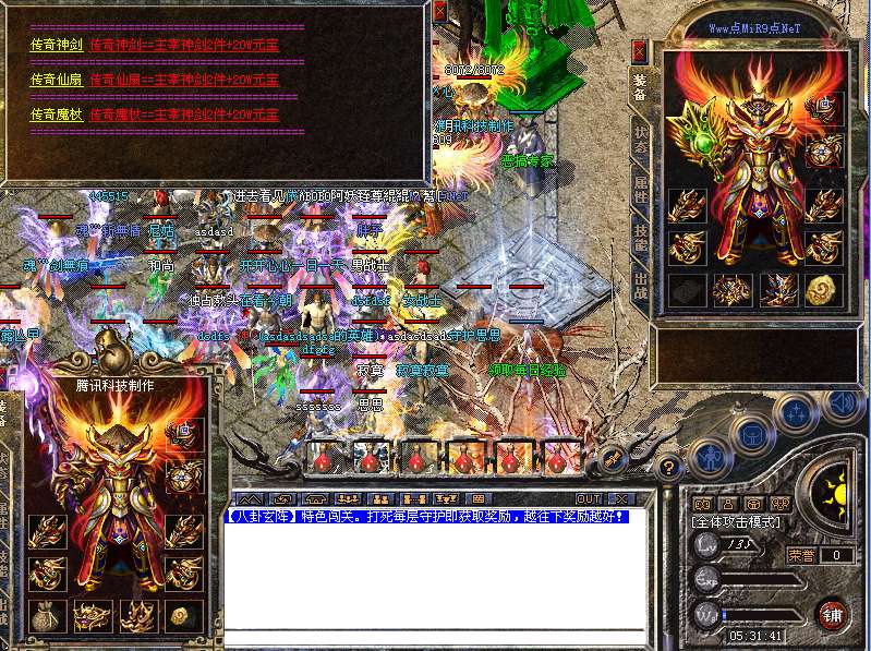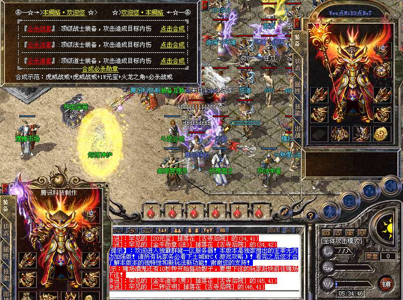 【特色功能】:【上古龙神】行会PK室(23.24)上古龙神90分钟会出现。爆装备元宝。。
