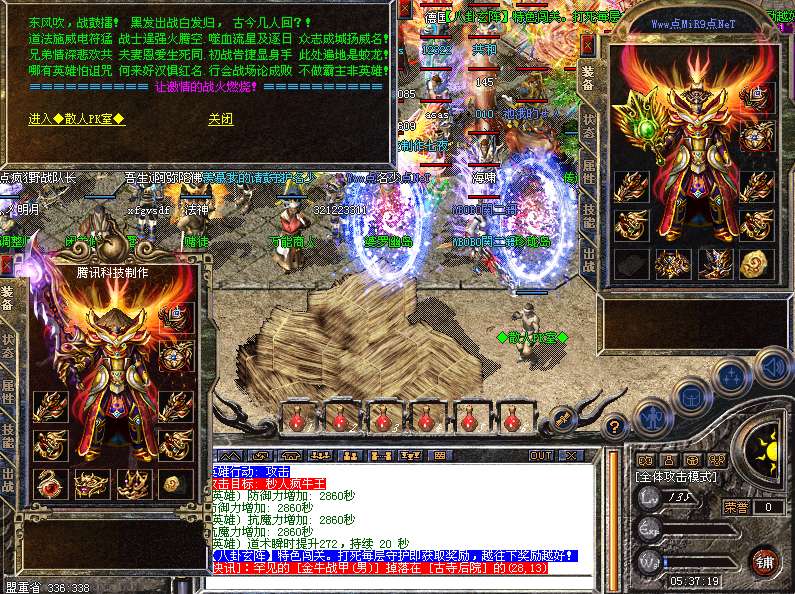 【特色功能】:【天降横财】每隔90分钟,会自动掉落大量元宝和金锭在行会PK室。
