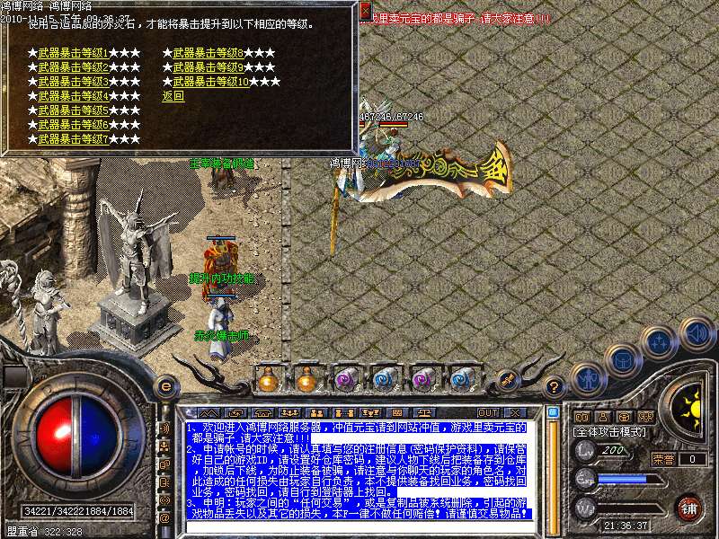 欢迎进入<$SERVERNAME>,本服为无GM管理模式,冲值元宝请到网站冲值!!!绝对好玩不变态,2011年风云连击版!!!