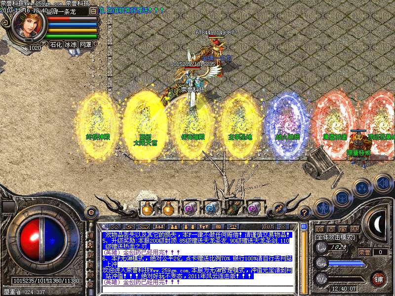 当前版本名称:荣誉科技-2011年独尊风云再起正在开区版-终极神殿-太阳天宫-传奇暗殿-3KM2