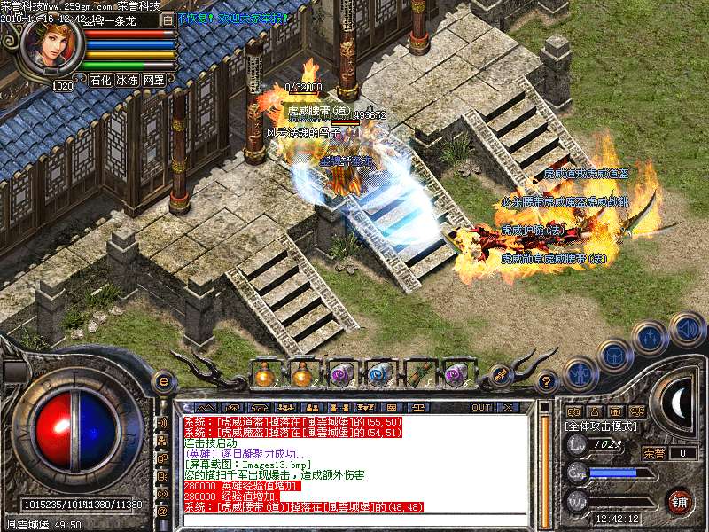 5、本服更新盛大传奇套装。装备依次是:必杀-主宰-传奇-風雲-獨尊。所有装备均可报错。请下载补丁才能看见風雲-獨尊装备