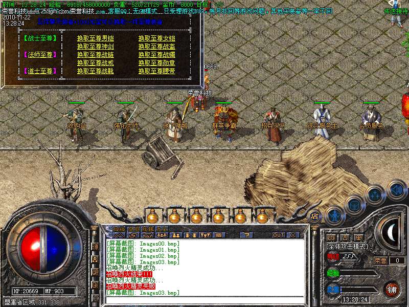 6.说明:增加三职业技能,战士:四级烈火,开天斩 道士:群体施毒,飓风破 法师:火龙气焰 流星火雨