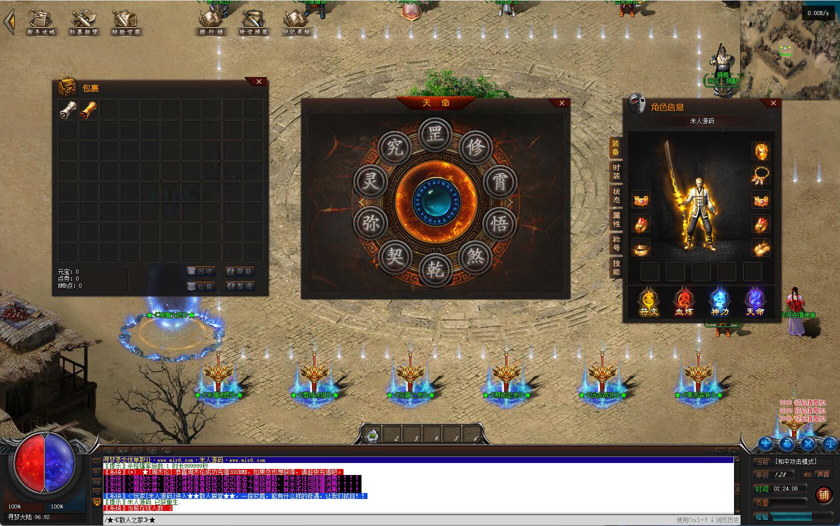 - ☉ V8引擎传奇端游【荒域专属单职业九大陆】Win一键端+配套补丁网站+架设教程