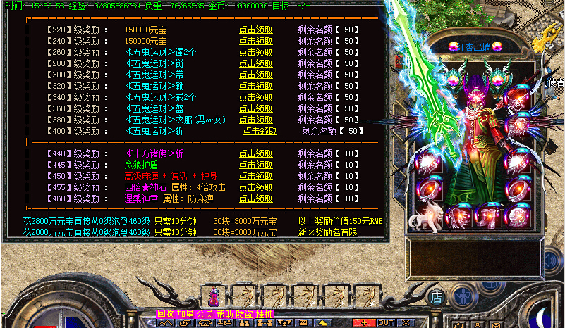 升级介绍: 升级奖励丰厚 散人免费泡点 不花钱一定冲顶级。