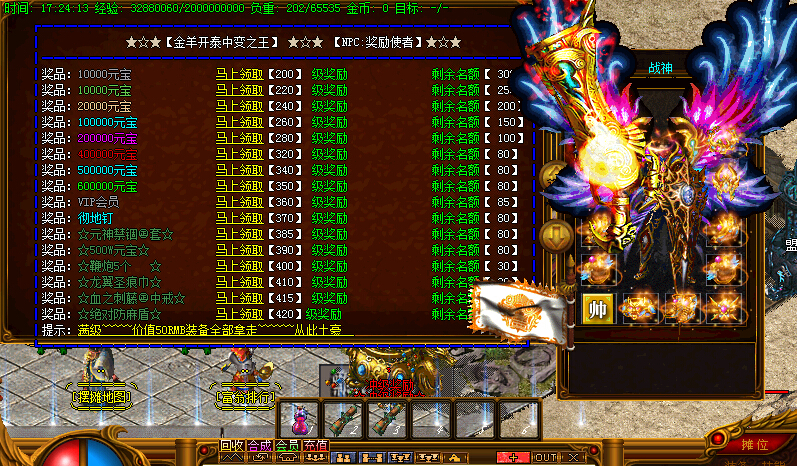【特色②】:元宝1:100万,网银100%,点卡90%请认准唯一管网充值渠道,无管理无客服活动特色多