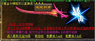 〖公告〗:激情真彩地图PK场.不但可以激情PK~还可以打到顶级装备!!!