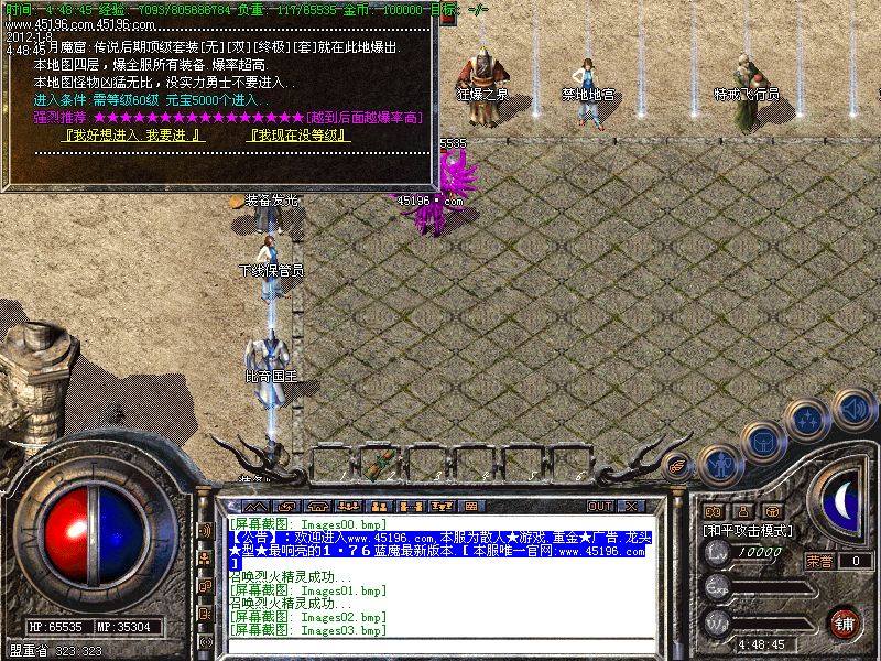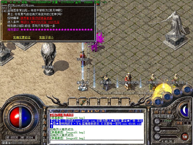 【公告】:⒘本服.每①个小时服务器系统会提示弹出窗口[武器神殿活动]怪物爆顶级武器、蓝魔の剑.....