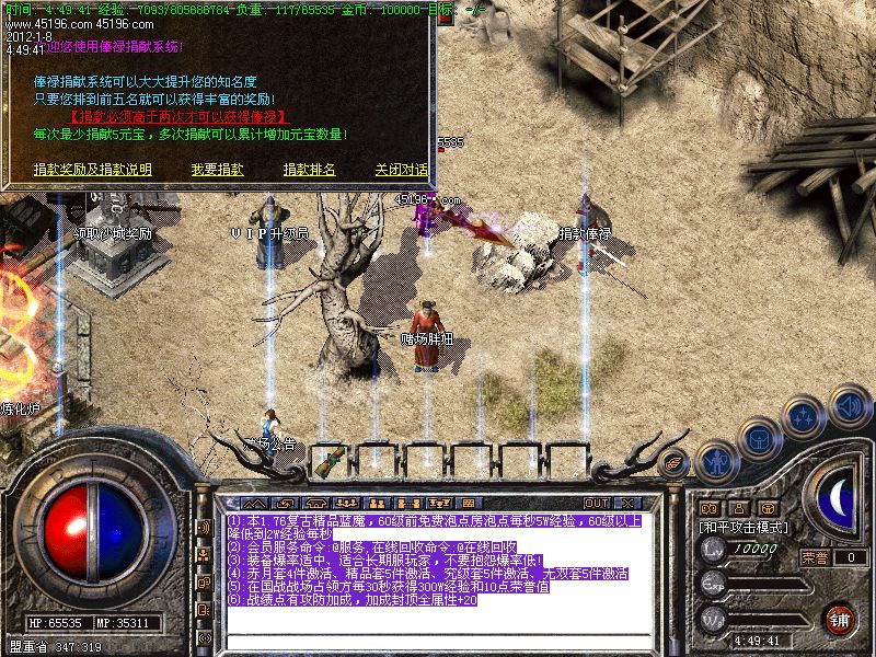【公告】:⒐本服新增加四级技能活动地图..服务器每2个小时会自动提示出窗口让您进去.一般开门时间为[0:30分 2:30分依次轮流下去]..