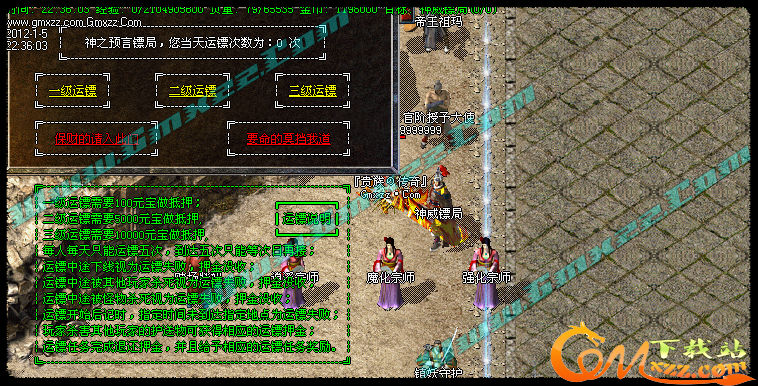 游戏中增加拉镖功能,只要把镖拉到指定地点即可获得海量经验!适合各等级玩家.