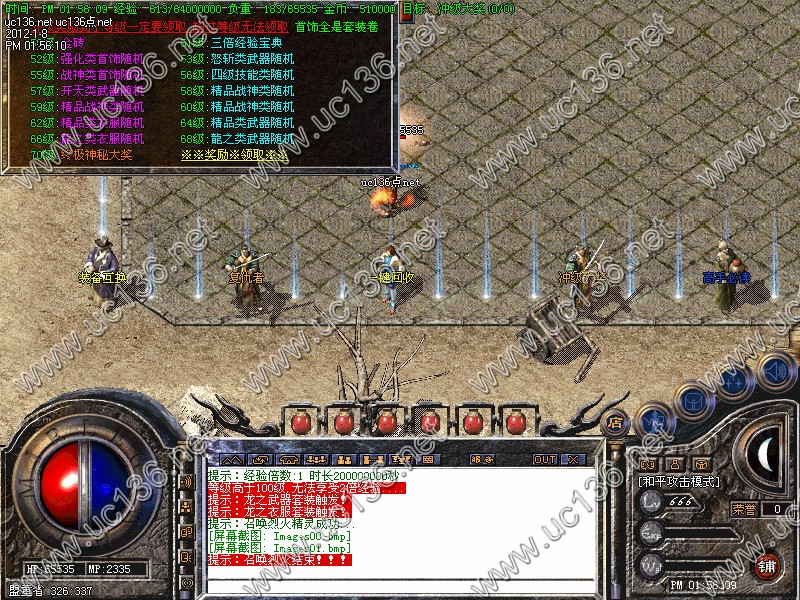 装备地图:地图不多不少,刚刚好,喜欢单独打怪,不喜欢和别人抢的玩家可以选择进入十二生肖地图,5层之后每小时都有大量BOSS出现,足够你慢慢享受打宝的乐趣。12层更是BOSS集中营!