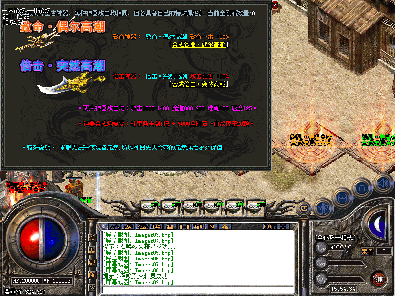 【上古神器】本服无元素属性,唯一拥有高元素的武器为两大神器。拥有两大神器可以直接免费合成本服终极神器。