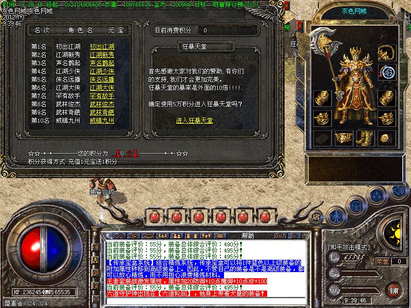 【王者天堂】每天15点.19点.0点开放.此地图任何大小怪物都可以有几率爆出雷霆和战神装备.