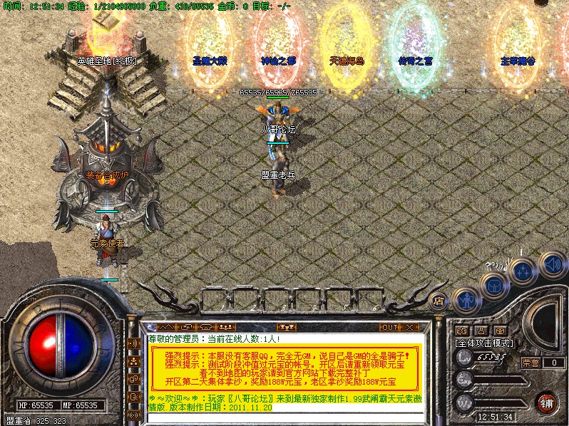 【申明】本服元宝比例1:20000 点卡多送%80 网银多送%100,一律使用冲值平台冲值!