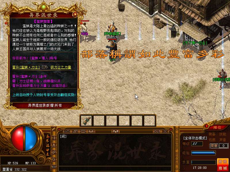 异界简介:【异界混世录】目前分两个种族部落,蛮族、人族(种族间每日都有战争,激情不言而喻!)