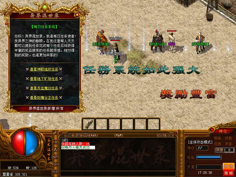 任务使者:任务分每天任务,剧情任务。任务越困难那么奖励也就非常之乐观!