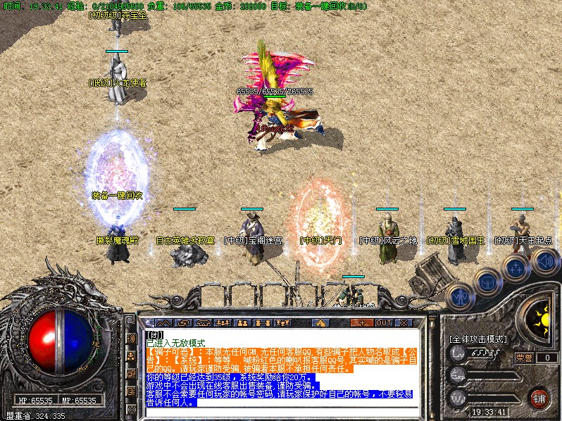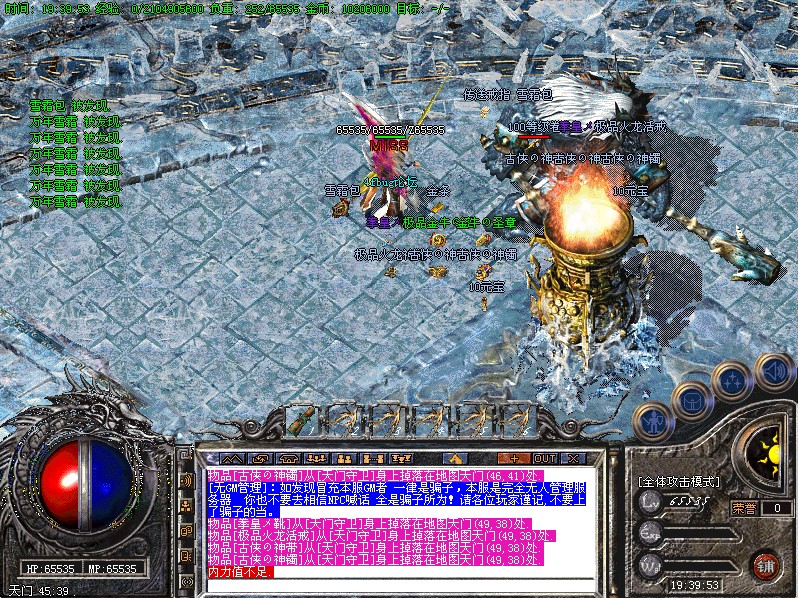 道士180级召唤2只强化白虎圣兽,附带麻痹属性。