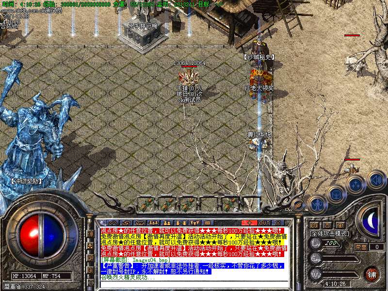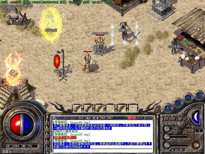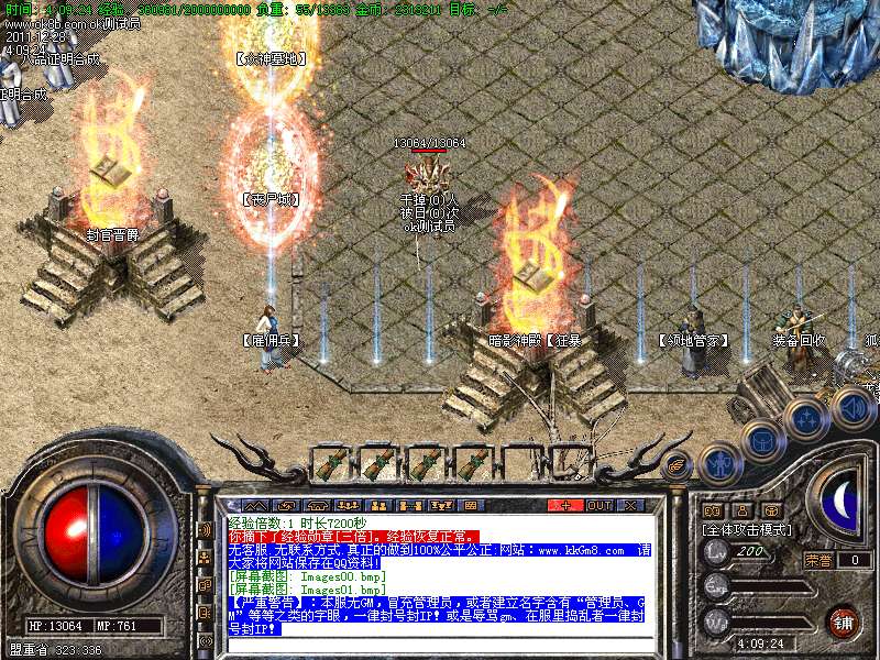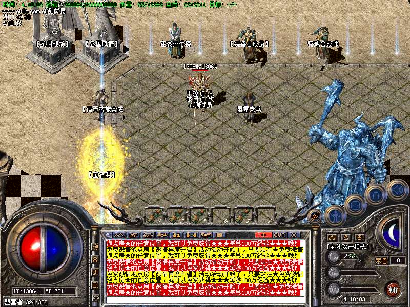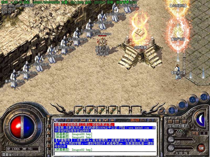 【4】:荣誉地狱,刷新全服所有高级BOSS,刷新快,需要元宝进入、二级雇佣兵可免费进入.此地为必争重地.刷新快,爆率高!