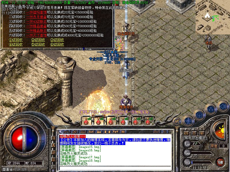 【元宝回收】多余的装备可以兑换元宝经验等不同的奖励.
