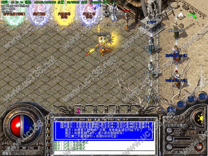 ②.本F均衡了三职业的平衡!道士120招《万劫龙神》130增加一只,战士增加彻地钉和法师一样打怪练级超猛