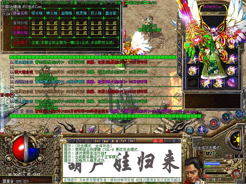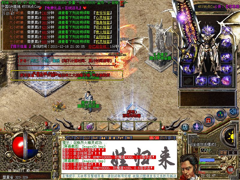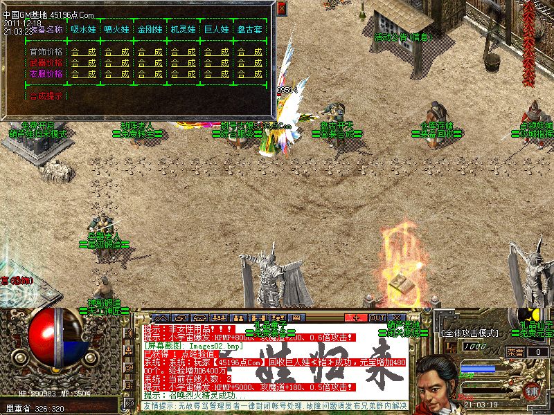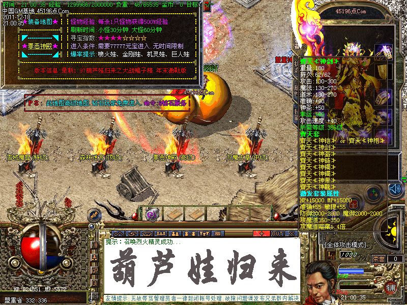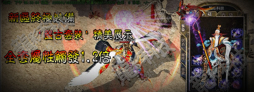 【老区更新】1、精美靓丽装备[齊天套装全套配齐1.4倍暗藏属性].2、地图更新[邪恶动物园]比外界的地图爆率要高出1/2倍.3、更新活动[雷霆一击]活动坐标土城361:347附近.