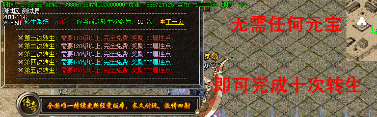 【更新】更新转生系统,1-10转,完全免费,转生后每转都可以获得相应属性点.详情请看转生仙子!