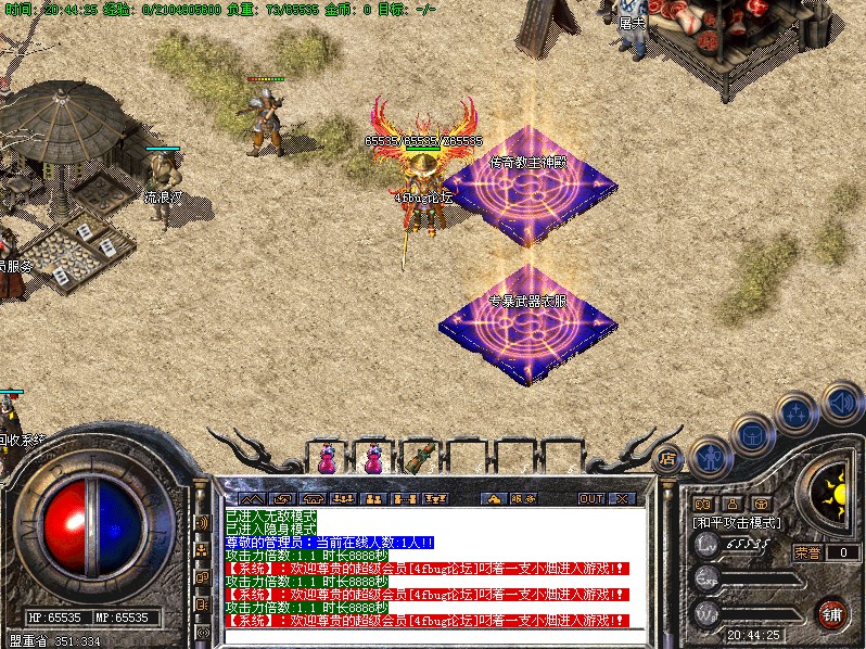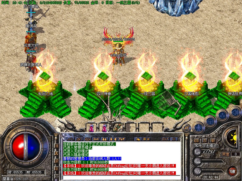 服务器新增加终极BOSS,必杀圣者,是服务器指定暴武器装备BOSS,主要刷新地:夷陵之战,官渡之战,白帝城,会员地