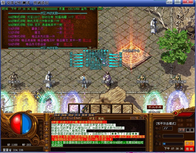 <255,220>〖公告〗占沙奖励:首次开区第三天集体攻沙,占沙行会老大可获得500000元宝,功沙奖励自行到沙巴克皇宫领取!合区以后老区每天自动攻沙!沙老大奖励200000元宝!