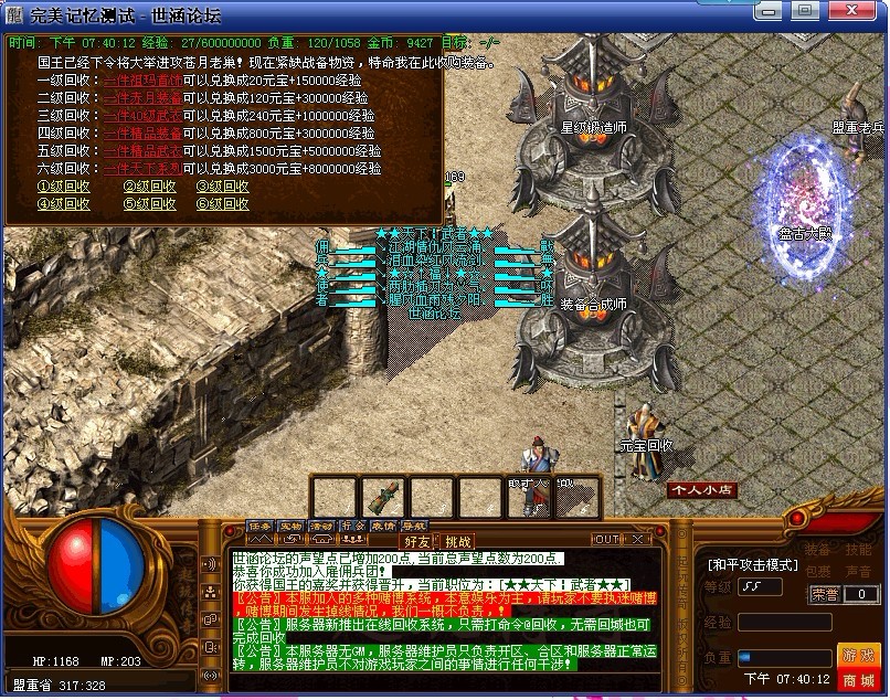 〖公告〗服务器新推出在线回收系统,只需打命令@回收,无需回城也可完成回收!