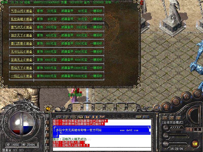 【版本申明】大胆创新 1.89靓装轻中变元素 打破传统游戏死板玩法 升级经验快 装备爆率高 装备回收元宝多