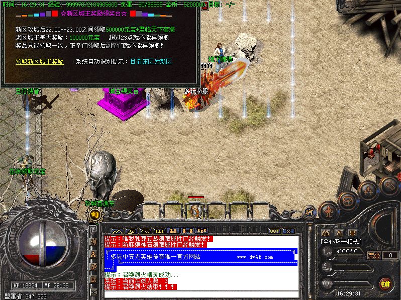 【攻城奖励】新区第二天集体抢沙, 首届城主奖励50万元宝+三号套,历届奖励10万元宝 人气增加奖励也增加