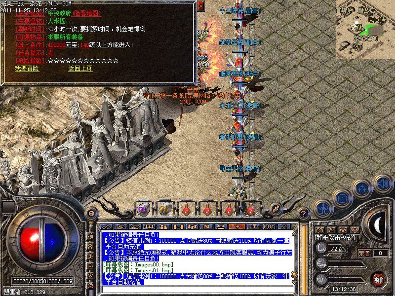 [南非球场] 此地图可爆出传奇系列装备,进入需要元宝20W个.需要等级130级.