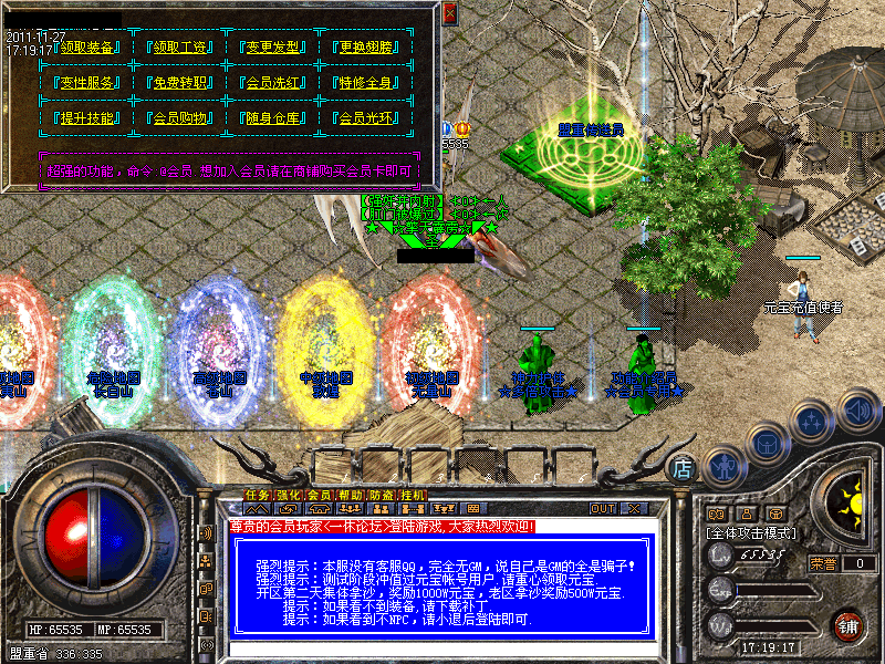 【公告】各个安全区自动喊话的NPC都是假的,系统喊话是红字和蓝字,所以请玩家特别注意不要上当.本服唯一客服无GM 会员命令为:@会员