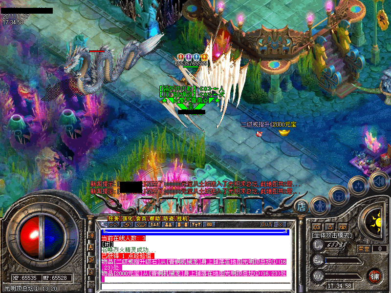 【激情丰碑】每晚8点至10点,激情城堡内每10分钟刷一次激情丰碑,必爆大量元宝+终极装备。